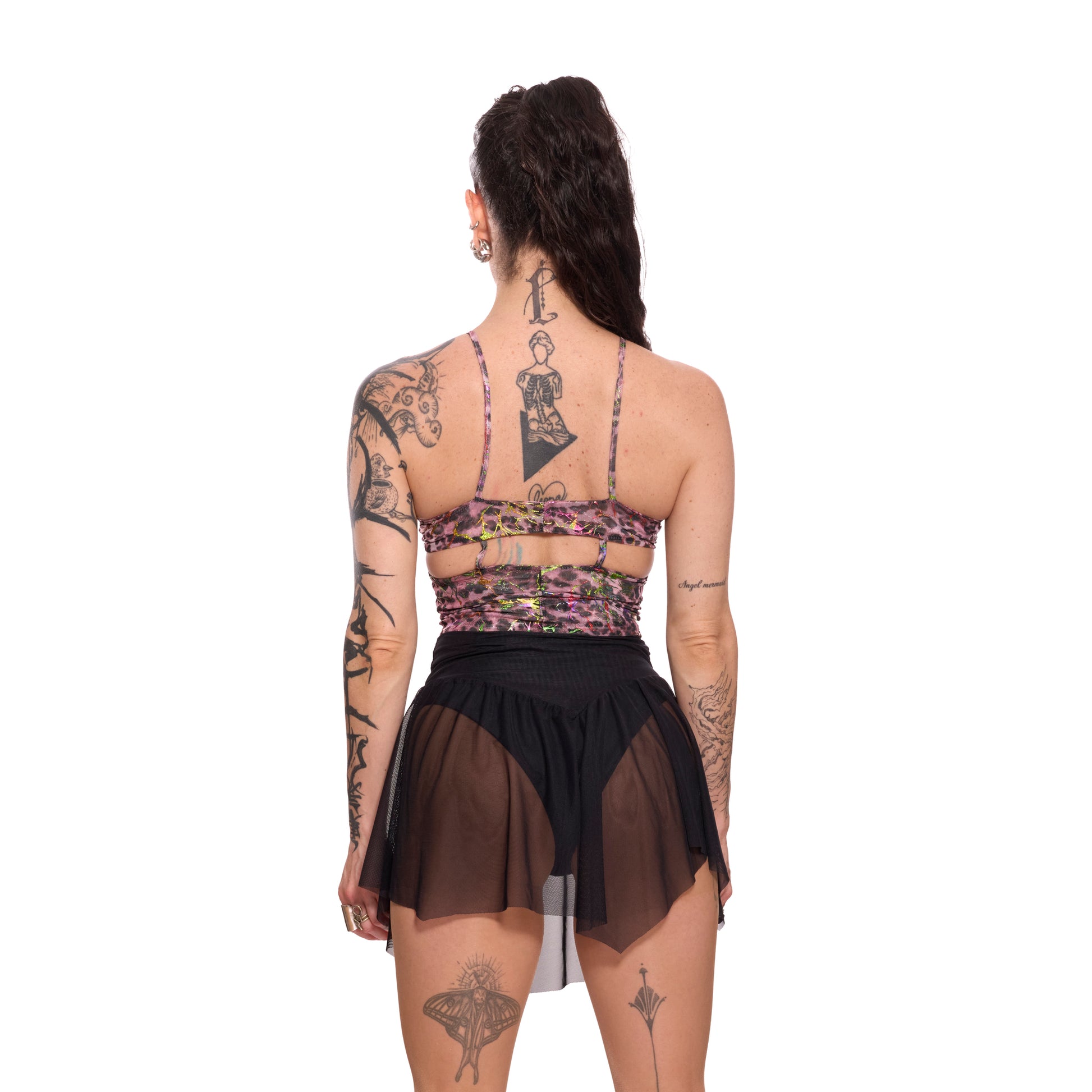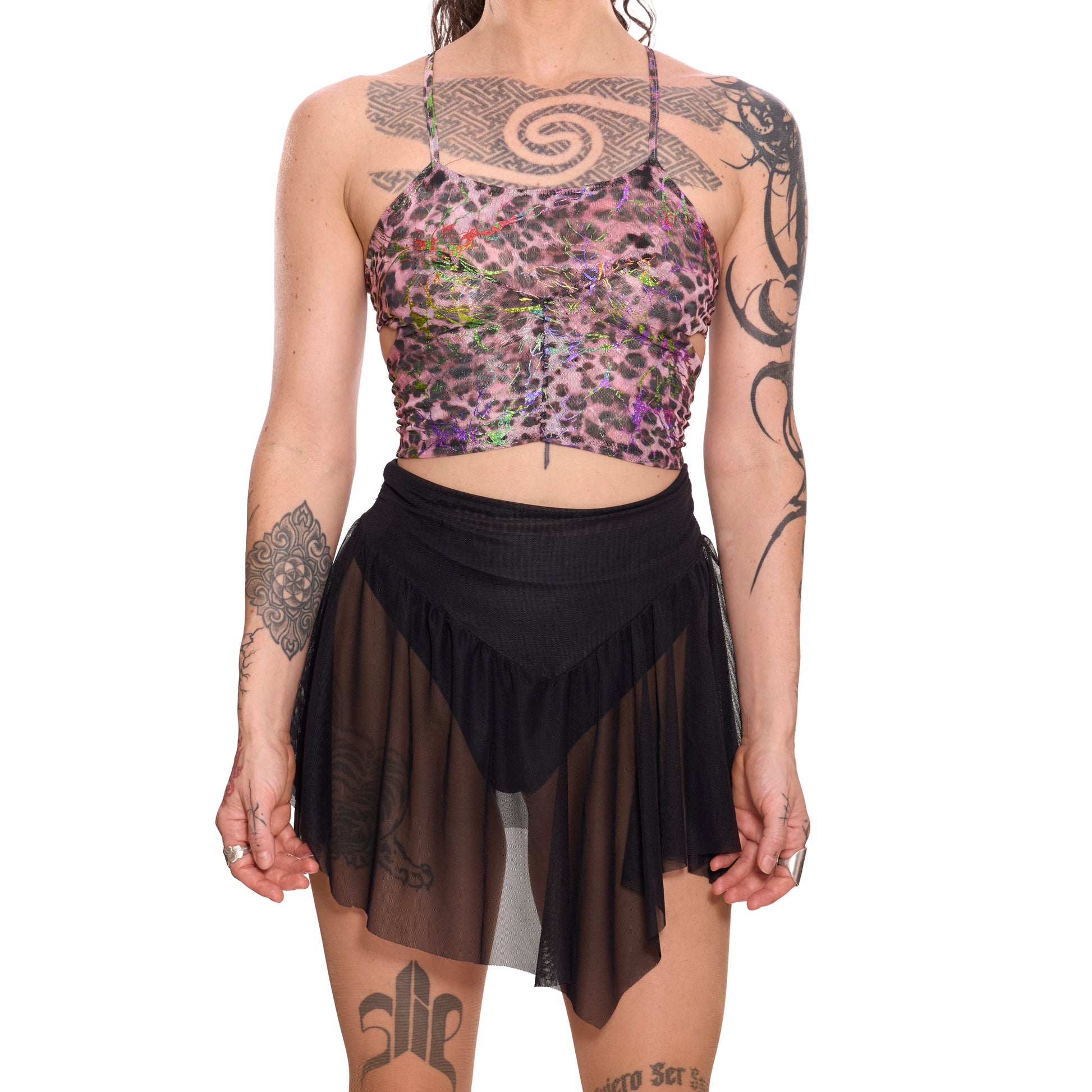 Pair your top with this sheer skirt for a playful yet stylish look. The lightweight fabric moves gracefully, making it perfect for creating a dynamic, fashion-forward outfit.
