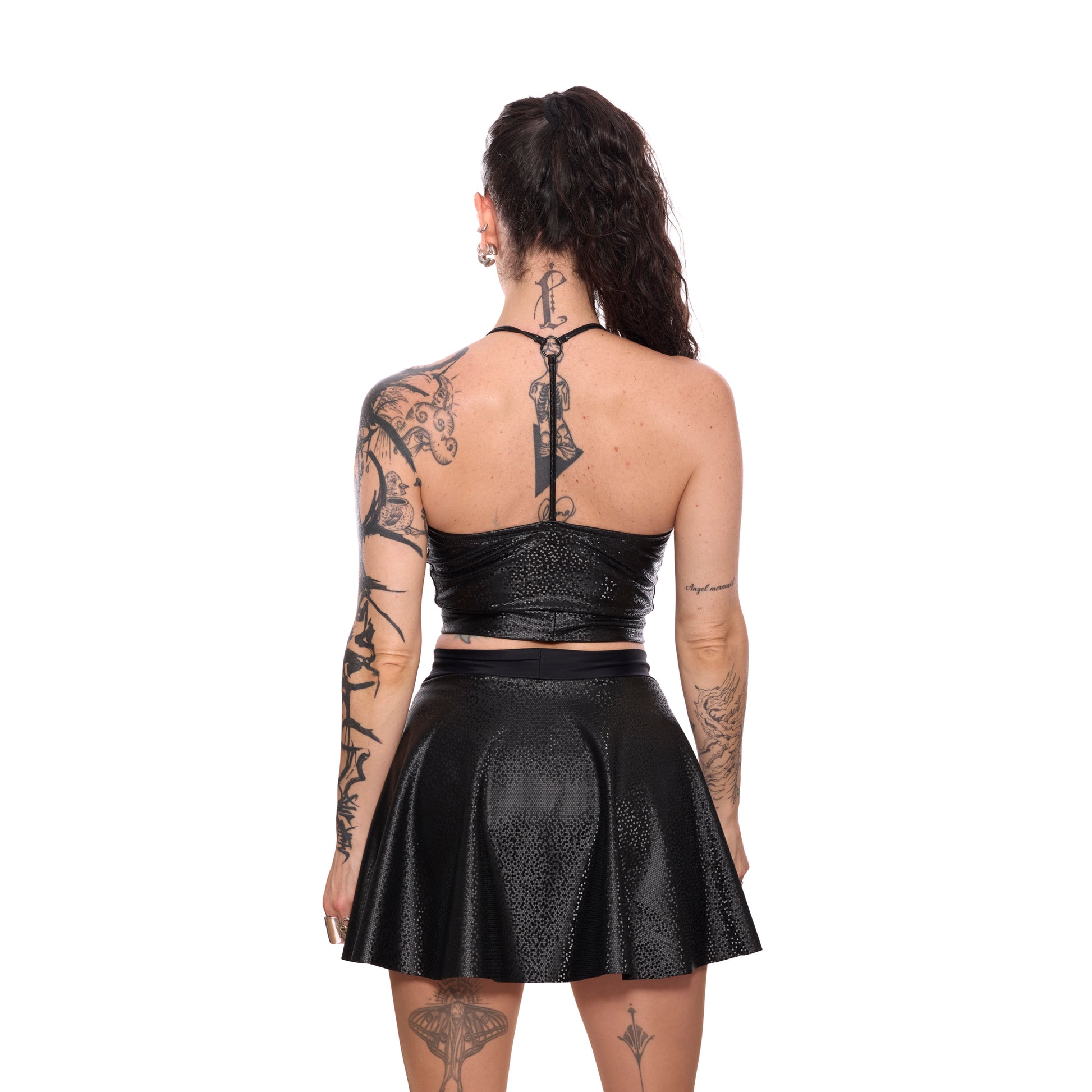 Shine brightly with this striking top. The design emphasizes your curves with a sleek, fitted look. The center of the top features a mesh cutout that makes you look more sensual and bold. Perfect for making a statement at any event.